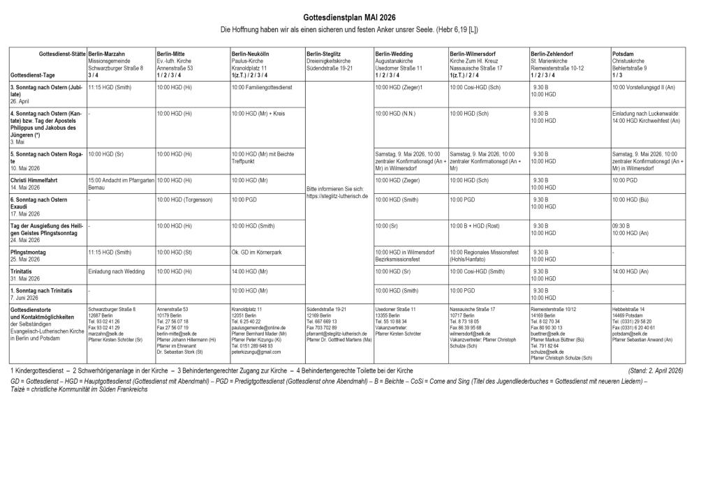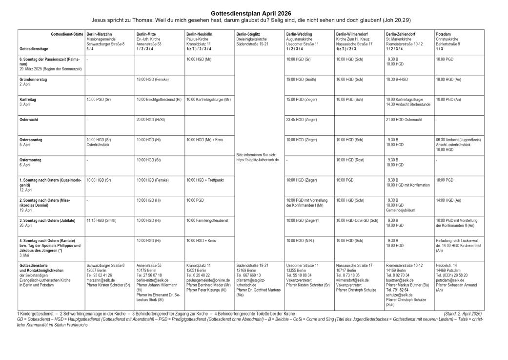 Gottesdienstpläne der Gemeinden in Berlin und Potsdam: